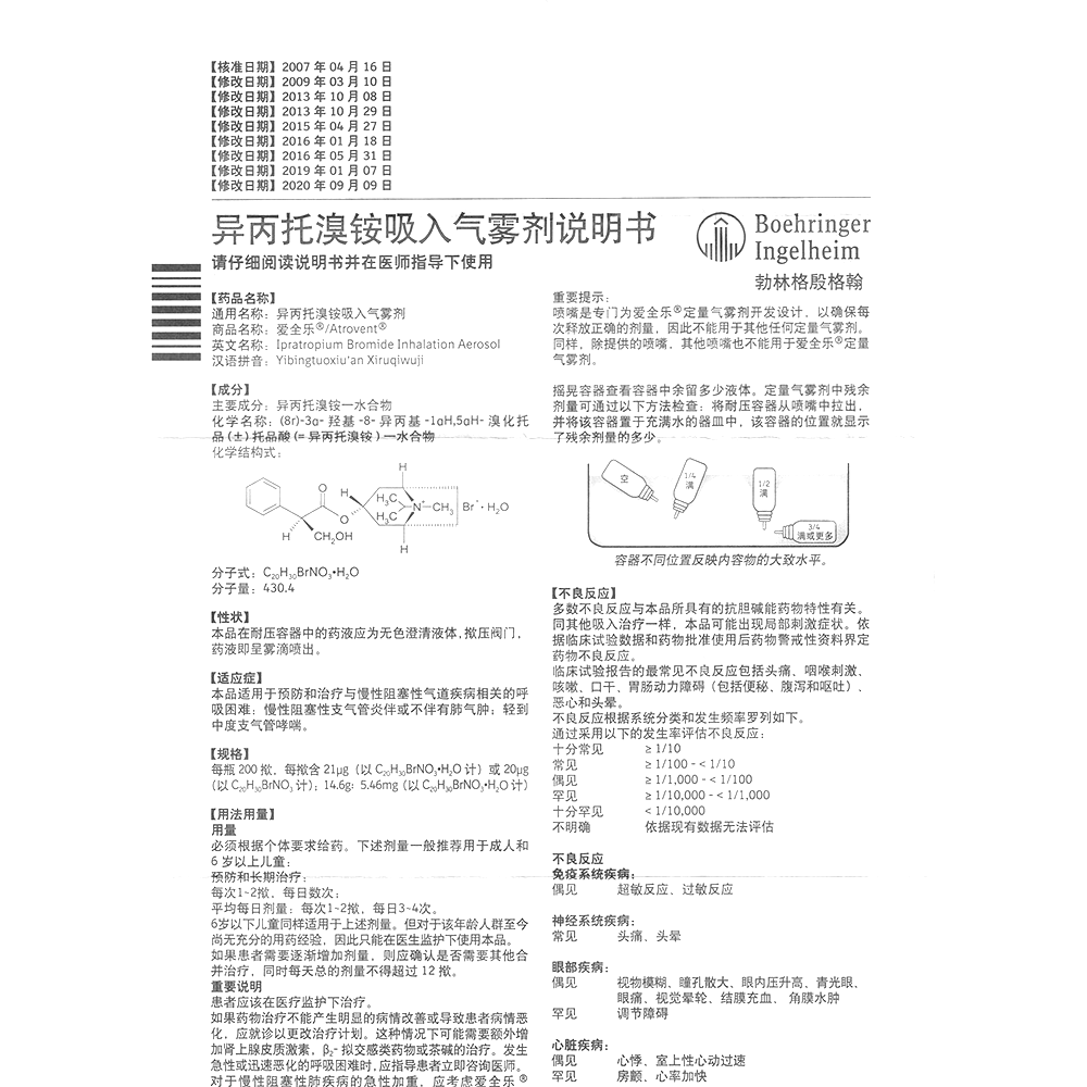 药品名称】 异丙托溴铵气雾剂(爱全乐)
